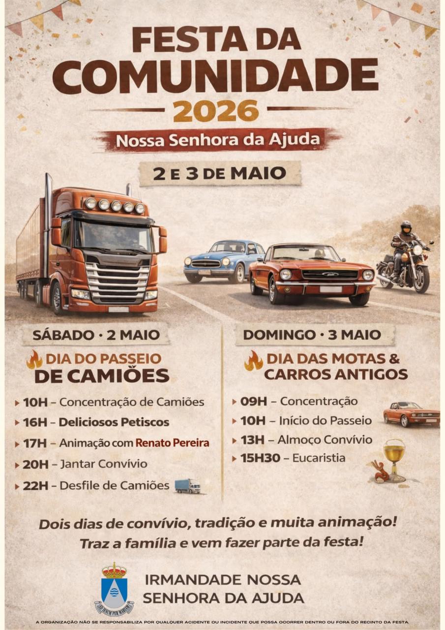 Passeio de motas e carros antigos no dia 3 de maio.